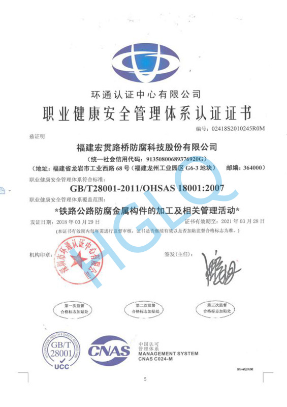 職業(yè)健康安全管理體系認(rèn)證證書(shū)