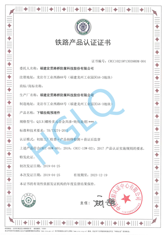 下埋拉線預(yù)埋件鐵路產(chǎn)品認(rèn) 證證書